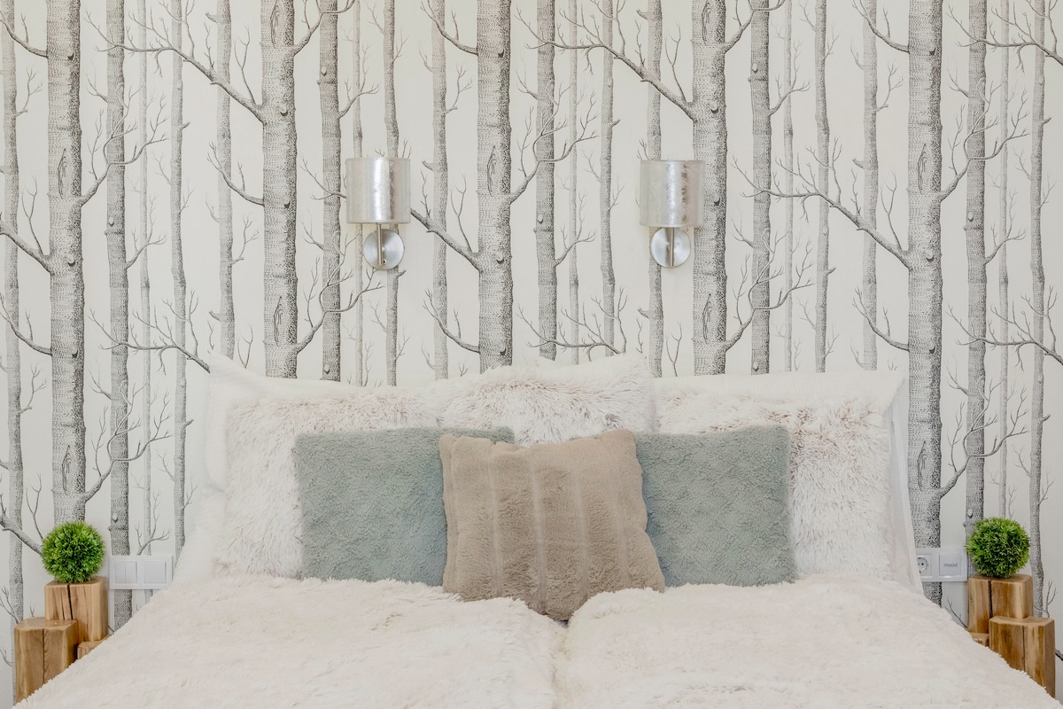 *Now with Netflix Premium on our 4K UHD TVs!* Sleep among the trees in our new designer apartment characterised by pure forms and distilled design simplicity. Built on the 4th floor of a recently renovated historical building, Forest Apt is one of the 9 newly built apartments collectively known as Karinflats. Fashioned by interior designers, equipped with brand new furniture and has all the necessities of a twenty-first-century home. NTAk reg. number: MA22046671