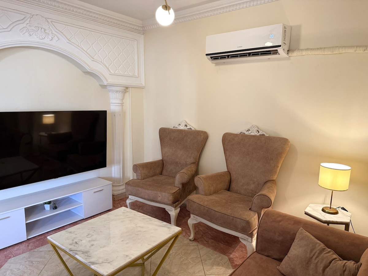 The perfect Cairo home for families! This 6th-floor retreat offers the rare luxury of TWO Master Suites + a twin room—giving parents the privacy they deserve. 🛍️ Walk Everywhere: Steps to Genena Mall & top dining. ❄️ Total Comfort: New split ACs & "unwind" balcony. 🍳 Chef’s Kitchen: High-end appliances for family meals. ⚡ Stay Connected: High-speed Wi-Fi & Smart TV. 🛡️ Safe & Easy: 24/7 security, 2 elevators & parking. Spacious, secure, and pristine. Book your family’s best stay!