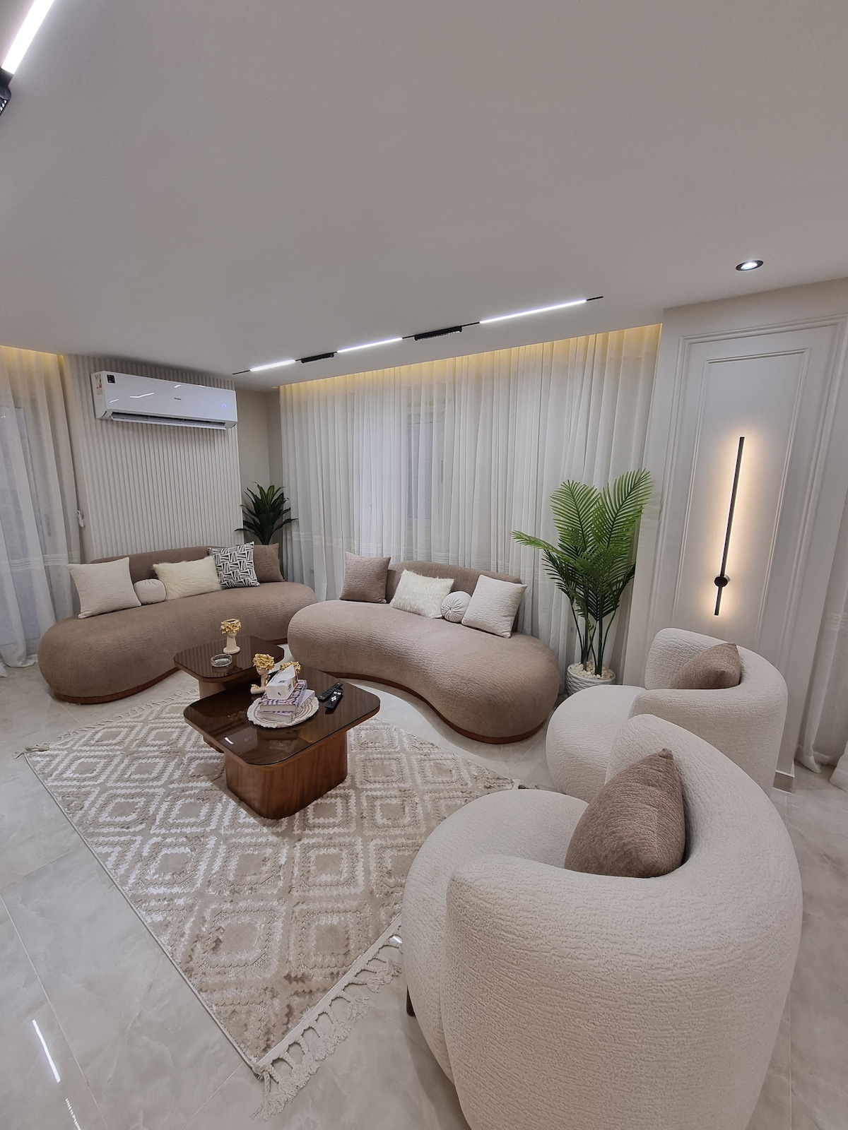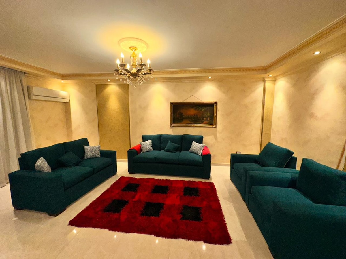 a fully furnished luxury apartment,close to Genena mall and all services , less than 10 mints from Airport , modern and comfortable reception area, fabulous bathrooms and master bedrooms, a beautiful balcony and kitchen. It is conveniently located with easy access to nearby streets, and offers a tranquil living environment. The apartment is ideal for single or small to medium families, and offers full Wi-Fi coverage , building with two electrical elevators and high security