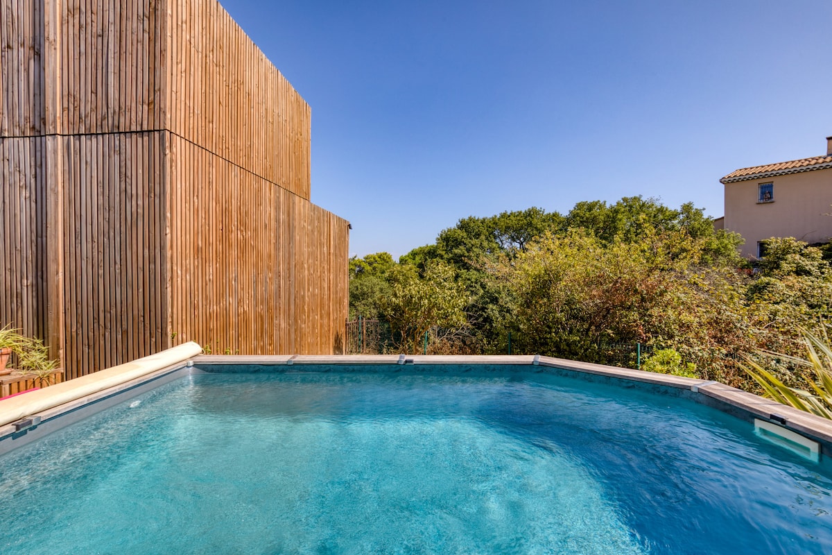 Welcome to our private oasis for 1 or 2 people in the heart of la roquette! Enjoy the heated salt water pool surrounded by tropical plants. The space will offer you a haven of shade and tranquility. Have breakfast, an aperitif, or cook poolside in the outdoor patio kitchen. The bedroom is air conditioned and equipped with luxury hotel quality bedding and organic linens, to ensure that your stay is relaxing and memorable.