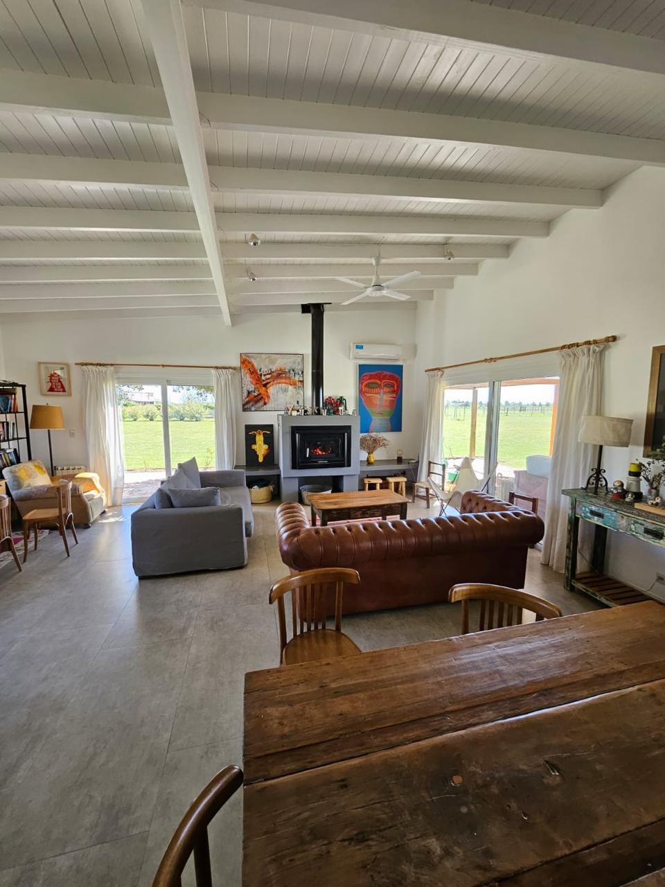 Refugia casa de campo esta ubicada en zona rural a 6 km del centro de Las Flores. emplazada en 3 has con un entorno natural y autóctono. Cuenta con piscina, parrilla, quincho semicubierto, galería con hamacas paraguayas, fogón exterior, arboles frutales, casita de madera y juegos de niños, horno y hogar a leña, bicicletas , senderos para caminar, decoración con obras de arte y un sinfín de espacios soñados para pasar una estadía inolvidable en cualquier momento del año.