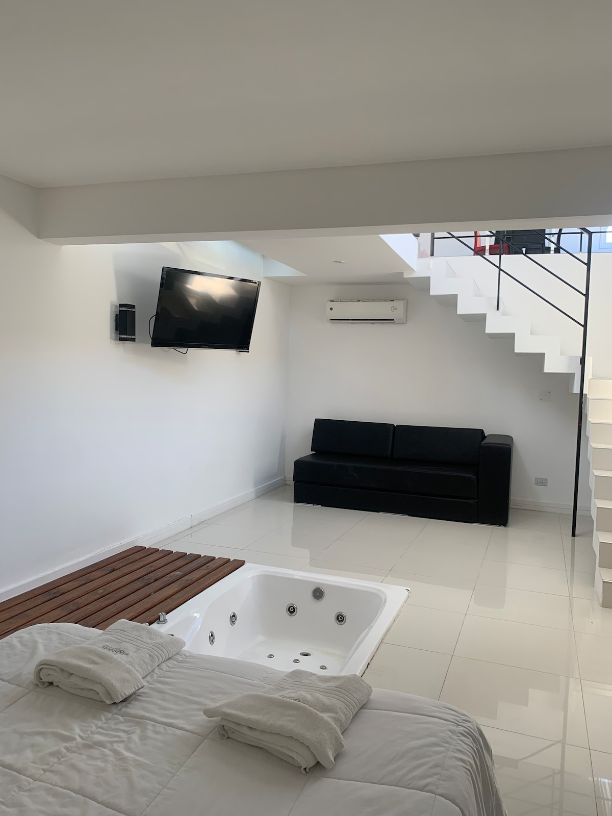 Relájate en un complejo excepcional con todas las comodidades. Monoambiente, sin cocina, con balcón (cuenta con pava eléctrica y frigobar). Tiene aire acondicionado, TV por cable e internet wifi. No incluye desayuno. Incluye ropa blanca - toallas para pileta. Piscina interior y exterior climatizada. Salón de juego. Parrilla a gas de uso compartido (con reserva de turno y costo adicional).