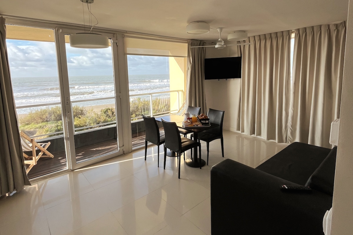 Departamentos con excelente vista, totalmente equipados, cocina, aire acondicionado, terraza con jacuzzi, habitaciones con baño privado, espacios comunes para fogata, pileta y estacionamiento propio sobre el mar.