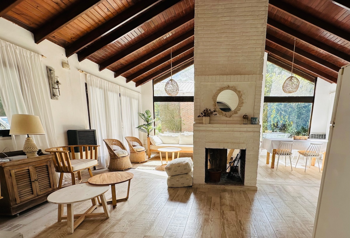 Descansá en nuestra cabaña rodeada de bosque, a solo 300 m del centro y 800 m del mar de Mar de las Pampas. Súper equipada para todo el año: hogar a leña, vitroconvectores y aire acondicionado frío/calor en todos los ambientes. Ideal para venir en pareja, o en familia. Aceptamos mascotas pequeñas. Si te gusta caminar, podés olvidarte del auto: el centro y la playa están a pocos pasos. Consultanos por escapadas de finde o estadías prolongadas. Early check-in/late check-out según disponibilidad.