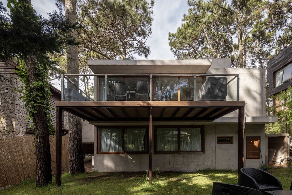 Experiencia premium de diseño en Mar Azul: casa moderna a 8 cuadras de la playa con piscina (jacuzzi, cascada, nado contracorriente). Living-cocina integrado, suite con vestidor, A/A y piso radiante. Terraza y patio rodeados de bosque. Casa hecha y equipada por su propio dueño que tambien suele vivir ahi por periodos. No te faltará nada. Full equipado: Cocina super completa, Wi‑Fi, alarma, lavarropas, lavavajillas, vinoteca, sonido funcional y estacionamiento. Relax total.