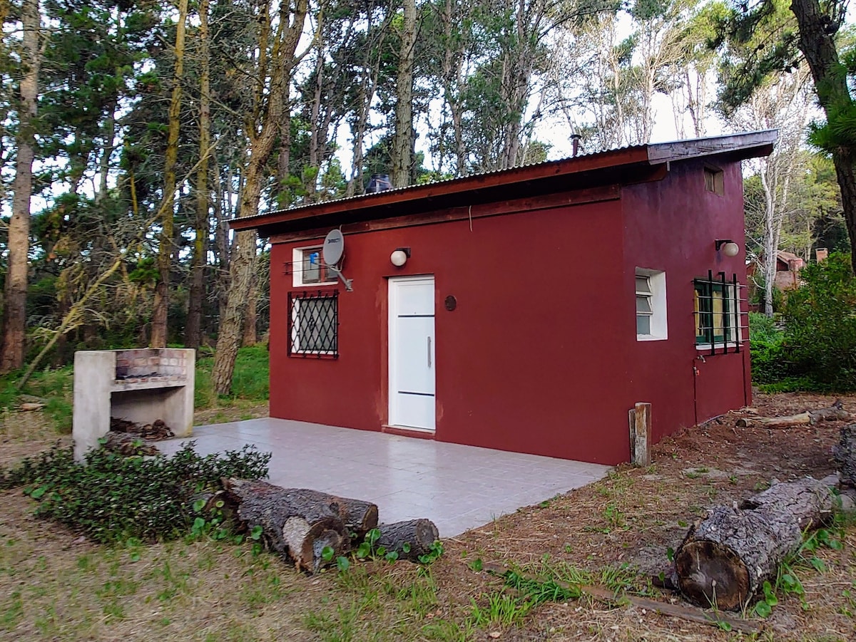 Pequeña y luminosa cabaña inmersa en el bosque. Un lugar ideal para parejas y una alternativa para personas solas que quieran descansar en silencio y despertar con el canto de los pájaros en un ambiente agreste y tranquilo. Cochera privada, tv, Wifi, alarma. Zona de parrilla exclusiva para huéspedes. Barrio residencial y familiar, alejada del bullicio de la temporada. Nos encontramos a 10 calles de la playa y a 15 del centro comercial. ATENCION: NO ACEPTAMOS CUATRICICLOS NI MOTOS.