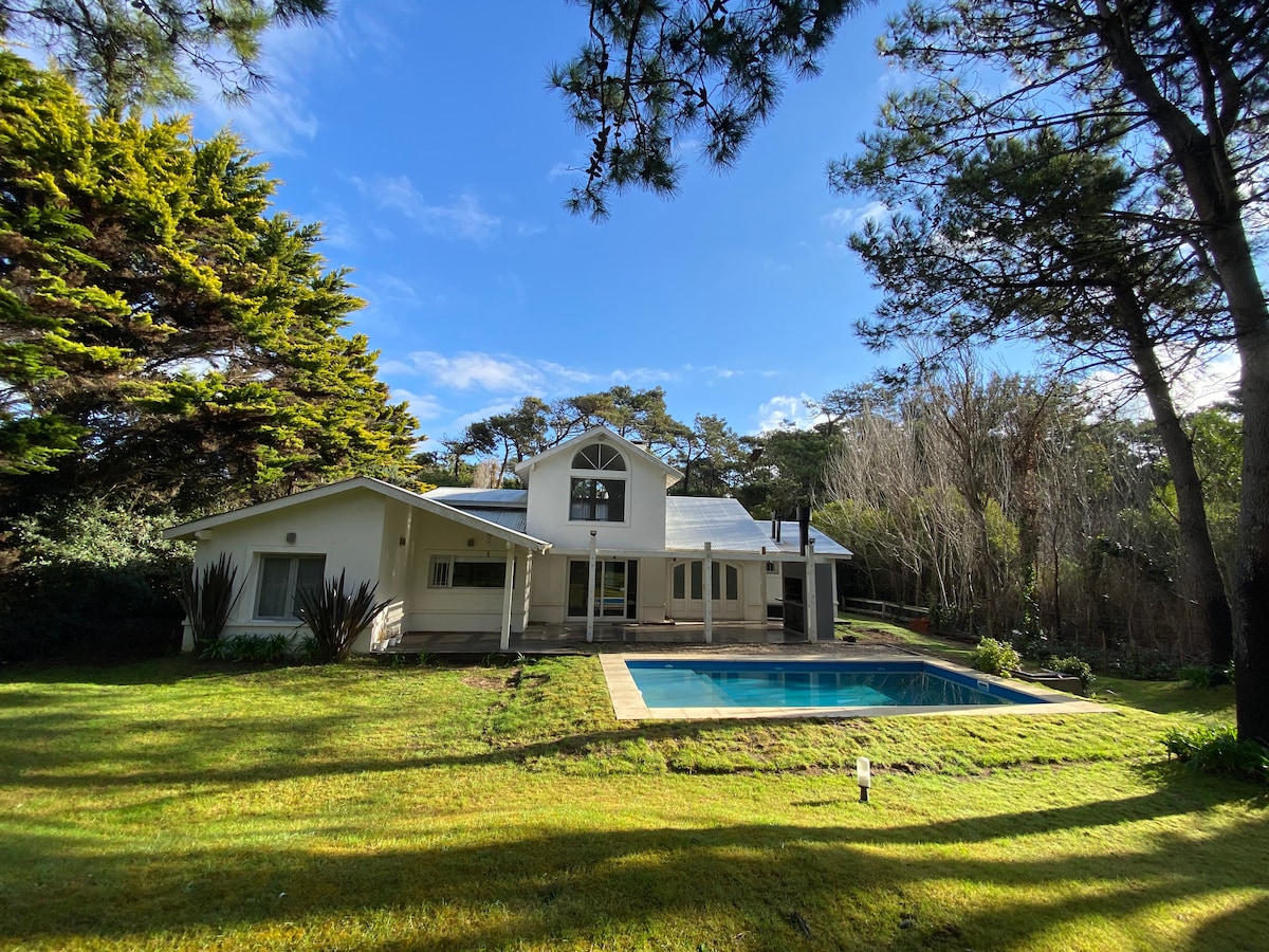 Casa Octubre es una hermosa casa ideal para dos familias, de estilo americano clásico, elegante y casual en un terreno de 1000m2 y 180m2 cubiertos. Ubicada a pocas cuadras de la playa y del centro y mucha comodidad interior para 7 personas y posibilidad de recibir invitados . Tiene un gran parque con piscina , arboles y sol, . Wifi de alta velocidad, 2 Smart tv, y cocina de 5 hornallas y gran horno , lavavajillas , aspiradora robot, plancha vertical y los infaltables en la cocina .