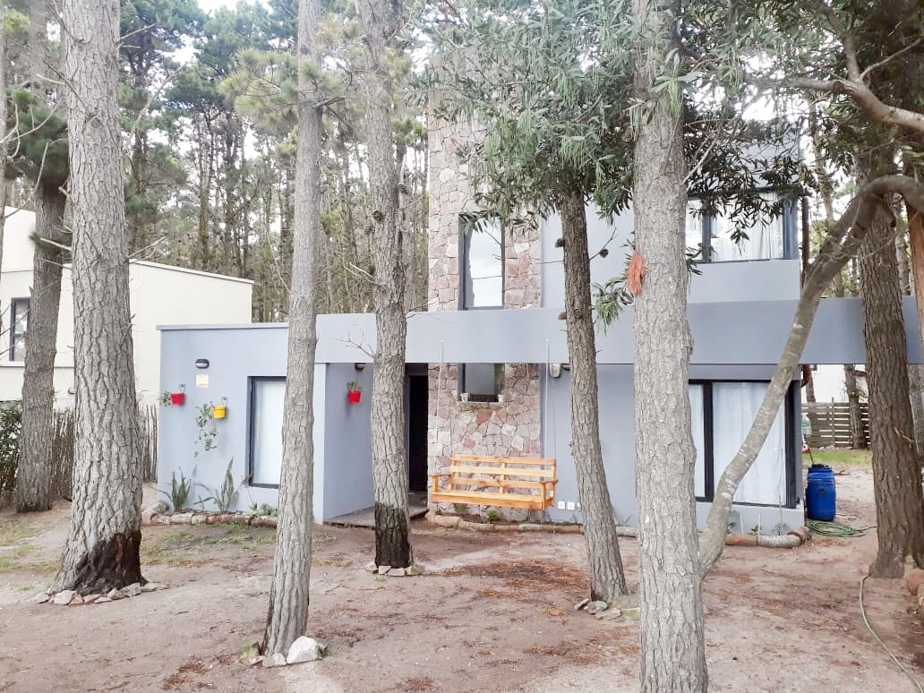 Relajate en este alojamiento único y tranquilo. Casa moderna a dos cuadras del mar y 3 cuadras del centro de mar de las Pampas. Excelentemente equipada, rodeada de árboles. Cuenta con dos dormitorios, dos baños y un entrepiso con dos camas cuchetas. Internet y televisión por cable. Parrilla y deck exterior con horno de barro. Chimenea a leña. Casa terminada en 2023, piso radiante. Gran deck al frente en medio del bosque.