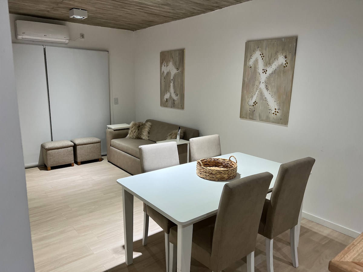✨Disfrutá de una estadía cómoda y relajada en este departamento moderno, luminoso y totalmente nuevo, ubicado en el corazón del centro comercial de Pinamar. Cuenta con 2 ambientes amplios. La habitación tiene baño completo en suite, y además dispone de toilette, lo que lo hace práctico y funcional tanto para parejas como para familias con niños. ❌No se recomienda para 4 adultos. La terraza es amplia y privada, perfecta para disfrutar del aire libre, y cuenta con parrilla eléctrica propia.