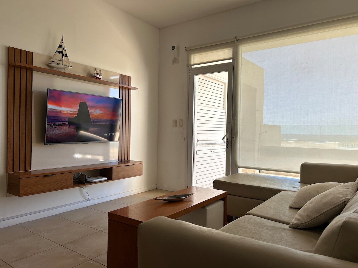 Disfrutá el otoño frente al mar 🌊 Ideal para cambiar de aire, relajarte o trabajar cómodo por unos días Depto de 4 ambientes con vista al mar y bajada a playa tranquila. Internet 300 MB ideal home office. Spa con sauna, piscina, gimnasio, 2 canchas de tenis, seguridad y limpieza diaria. Cochera para 2 autos. A minutos del centro, entre bosque y mar, con entorno tranquilo y natural. Cuando hay viento, el bosque ofrece senderos y ciclovías entre pinos 🌲