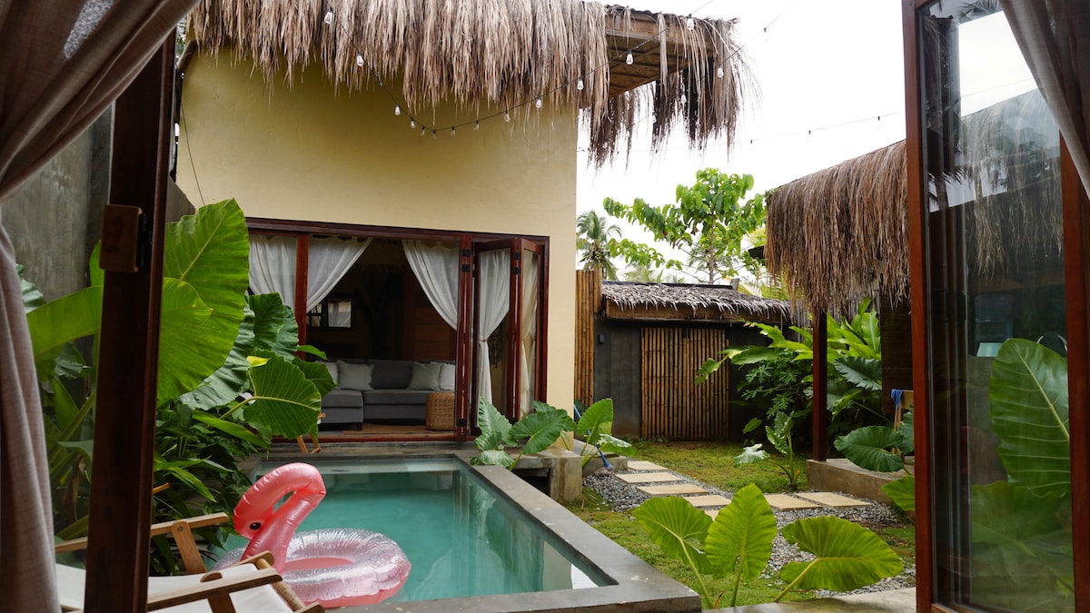 Welcome to this stunning private villa located near one of the most beautiful beaches of Siargao. Enjoy the scenic private outdoor pool views & stylishly furnished spacious indoor with a touch of local art. All just a few steps away from the beach. The unique mixture of modern design & tropical nature provides comfort and privacy whilst offering unique experience of luxurious getaway in a jungle paradise. You are only: 80 m to an empty sandy beach 8 mins to Cloud 9 11 mins to General Luna