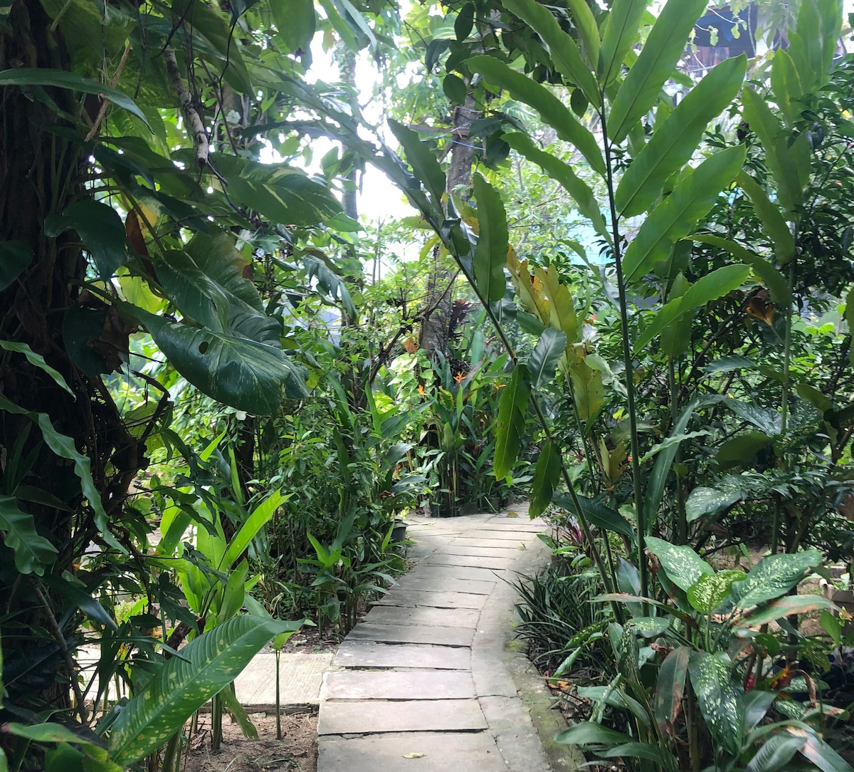 This cozy studio is nestled beside our own home. We're a couple who have lived and worked in Siargao for the past 7years. The studio is compact yet thoughtfully designed, featuring a kitchenette equipped with essential cookware and dinnerware, a small fridge for your refreshments, private toilet and bathroom, ample storage for your belongings, and climate control options (AC and fan) to ensure your comfort.