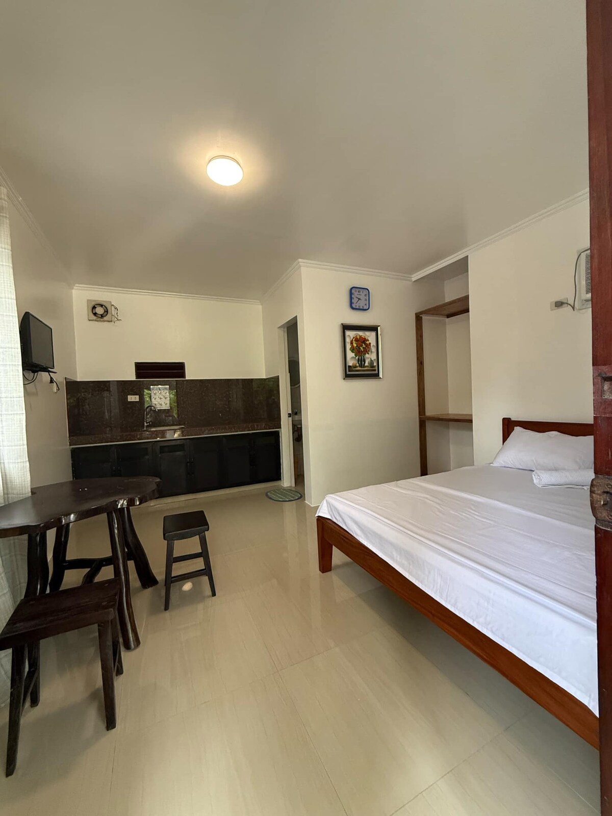 A peaceful room in Catangnan with a queen-size bed, private bathroom with hot shower, private patio or balcony, A/C, ceiling fan, small fridge, safety box, kettle, and hair dryer. Surrounded by greenery, the space offers comfort while keeping you close to Siargao’s top spots. Cloud 9 and General Luna are just a short ride away. Stay connected with Solar power and Starlink Wi-Fi, as well as a generator available during power outages. Your calm and cozy base for exploring Siargao Island.