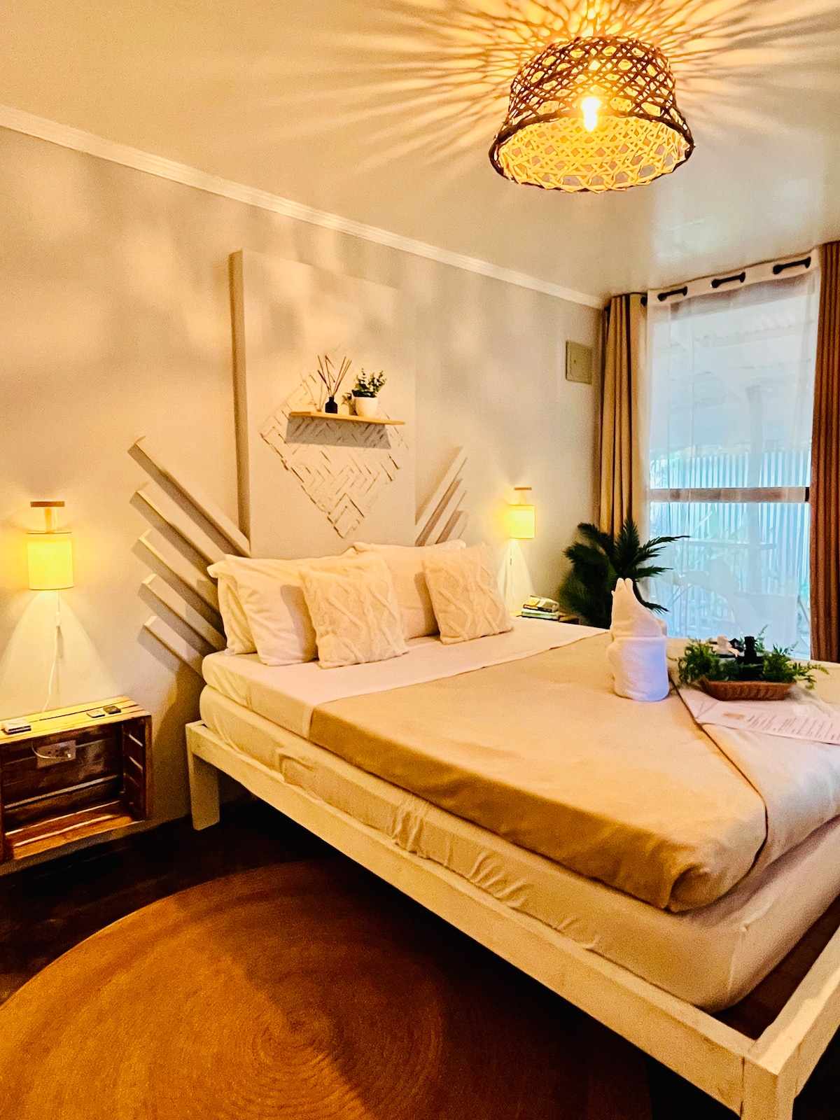 🌴 Tiny House Bohème avec Terrasse Privée – Siargao Bienvenue dans votre cocon bohème, pensé pour ralentir et profiter. Tiny house en bois et béton ciré, décorée avec soin, lumineuse et chaleureuse. Lit queen-size confortable, climatisation, cuisine équipée, salle de bain privée et grande terrasse pour savourer le calme. Jardin clos, intimité totale, à 5 min des plages. Idéal couple ou digital nomads. Wifi, clim, eau chaude. Réservez votre parenthèse bohème 💛