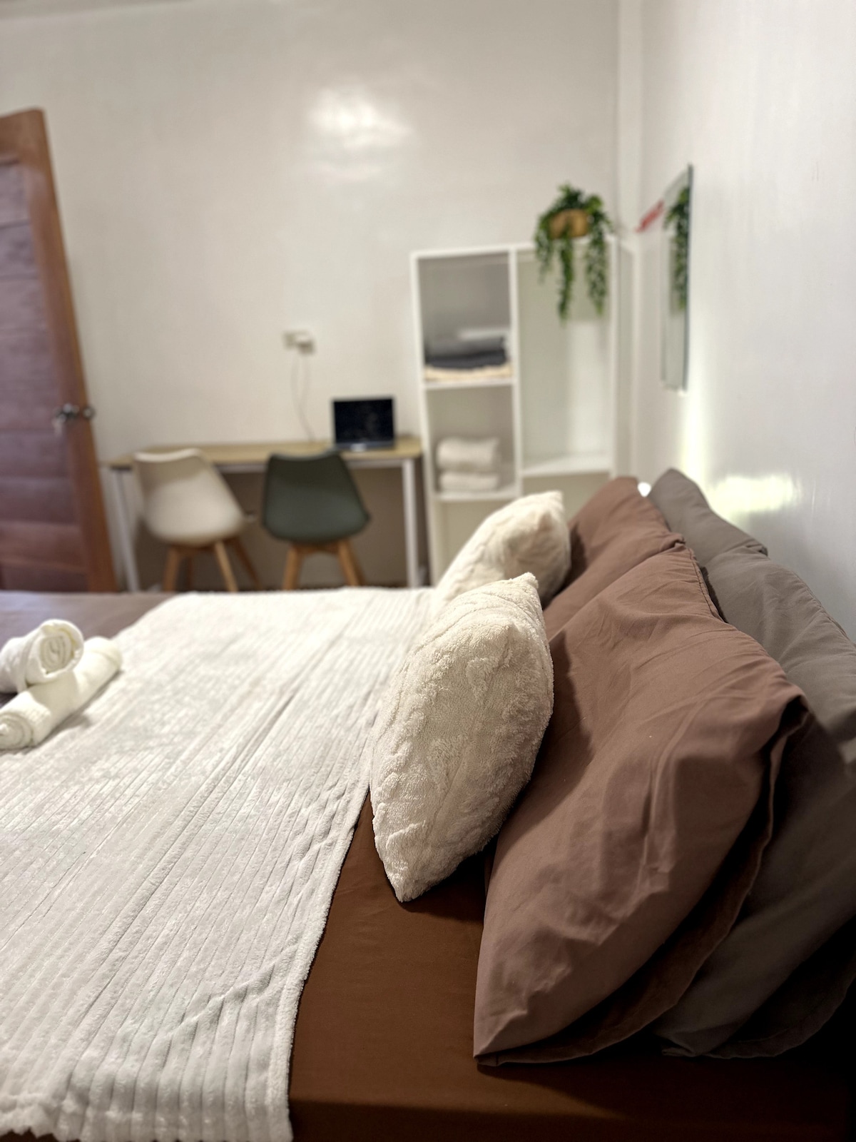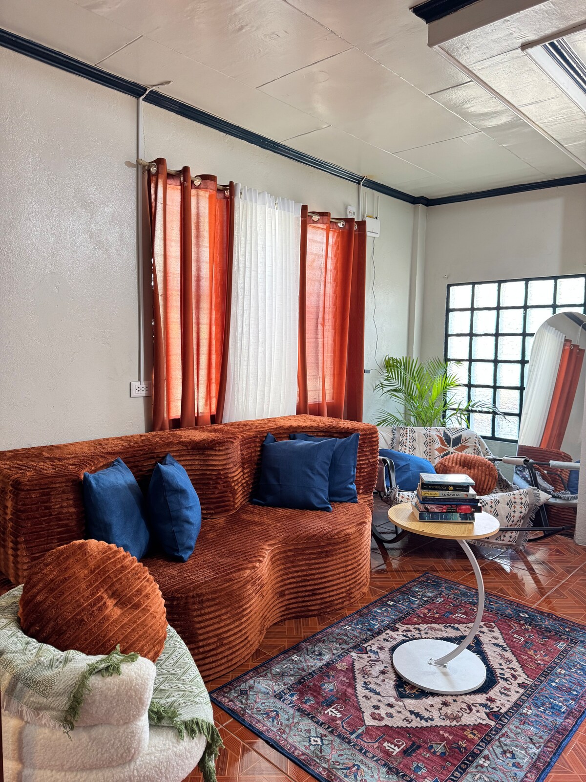 Escape to this new Cozy Tropical Studio House with a lush private porch, warm earthy tones, soft lighting, and tropical plants. Enjoy a comfy queen bed, split-type airconditioning, high-speed Starlink WiFi — reliable, work-friendly and a fully equipped mini kitchen—perfect for a chill coffee mornings or quiet nights. Walking distance from Kermit Restaurant, Tourism Rd. (5 mins walk), convenience stores, besides an ATM machine, restaurants, bars, cafes, and short ride to surf spots.