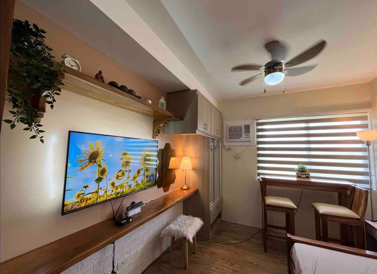 Looking for a cozy, minimalist spot for work or play? Our 17 sqm unit is perfect for business stays with its strong Wi-Fi, and just right for a relaxing city getaway. Heads up: being along the main road means some traffic noise, but the comfort, convenience, and city energy make it all worth! * Cozy Minimalist design * Unlimited Wifi use : 250 Mbps PLDT * Free Netflix & You Tube * Free use of card and board games * Cotton Linen&Towels * Kitchenette * 32-Inch TV * 1 HP Smart AC split type