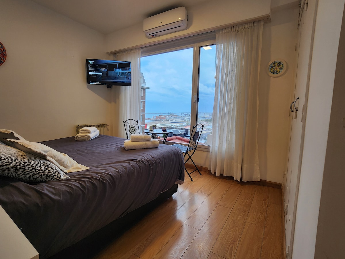 Marplatense de nacimiento, cumplí mi sueño de un departamento frente al mar en mi zona preferida de la ciudad. Ideal para dos personas con cama queen, completamente equipado. Increíble vista al mar desde habitación y living comedor. Hermoso y amplio balcón para disfrutar a toda hora. Cochera incluida en el edificio. Cozy Apartment for two. Queen bed, fully equipped. Ocean views from the bedroom and living room. Large balcony. Parking included.