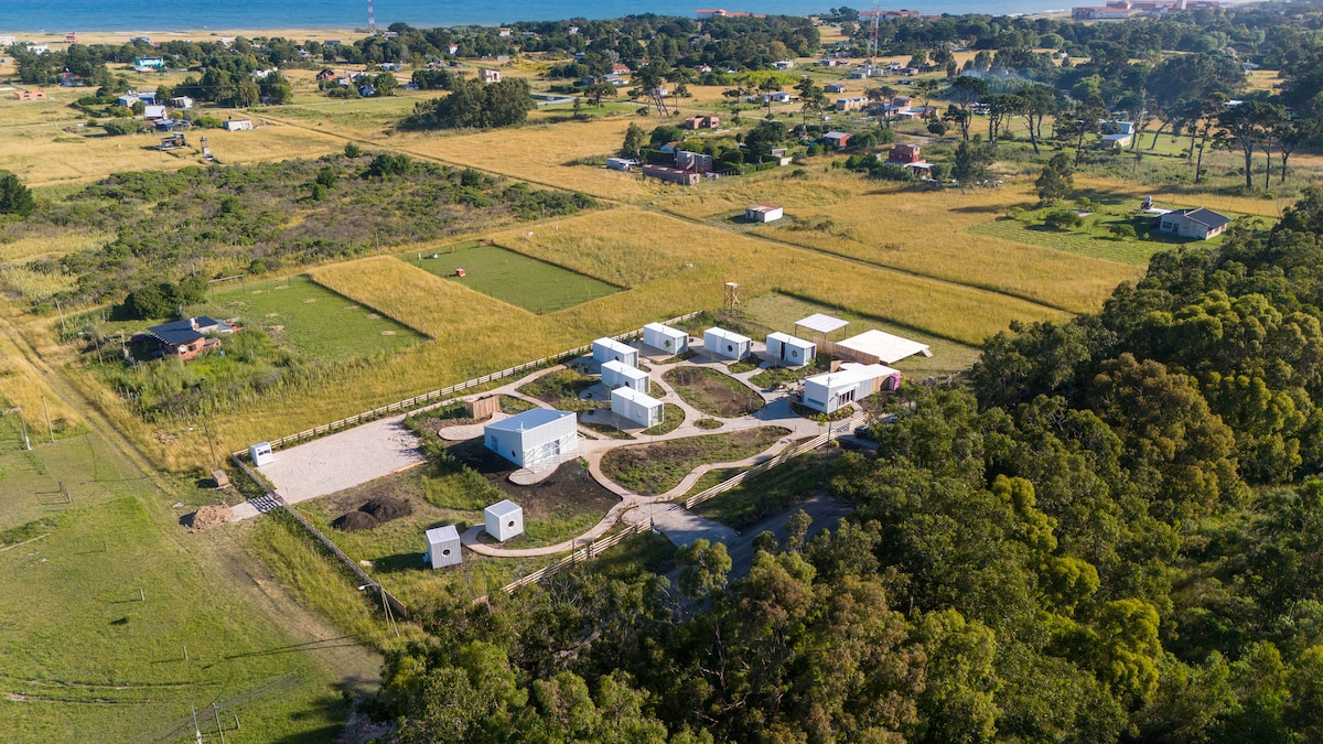 Rodeada de 7 hectáreas de naturaleza, es el lugar ideal para descansar y desconectar a solo 22 km de Mar del Plata. ✔ Mini piscina privada con jets ✔ Chiringuito con parrilla individual ✔ Brunch campestre incluido cada mañana ✔ Aperitivo en la hora dorada con vista abierta ✔ Netflix, Paramount Disney ✔ Una noche de campo con cena casera a la cacerola o fondue Cada detalle está pensado para tu descanso: sábanas de hilo bordadas, vajilla vintage y la serenidad de un campo con vista 360°.