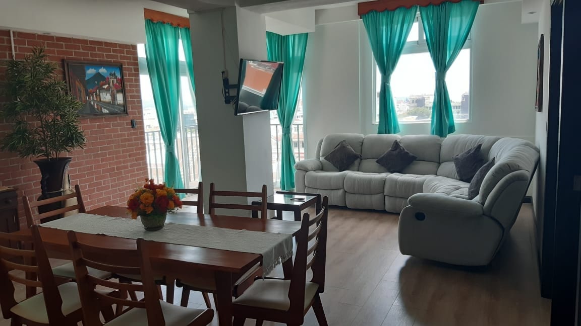 It's a very comfortable, spacious and nice place, right in the heart of Guatemala City. It has a great view because it's located in the 11th floor. You can find different restaurants, coffee shops, bakeries, shops and touristic places nearby. It has a queen bed, sofa bed, another huge sofa, bathroom with hot water, washer and dryer machine, dining room, a desk where you can work on your computer, Wi-Fi, NETFLIX, HBO and cable TV. There is an EcoFilter for water and a fan. IT INCLUDES PARKING.