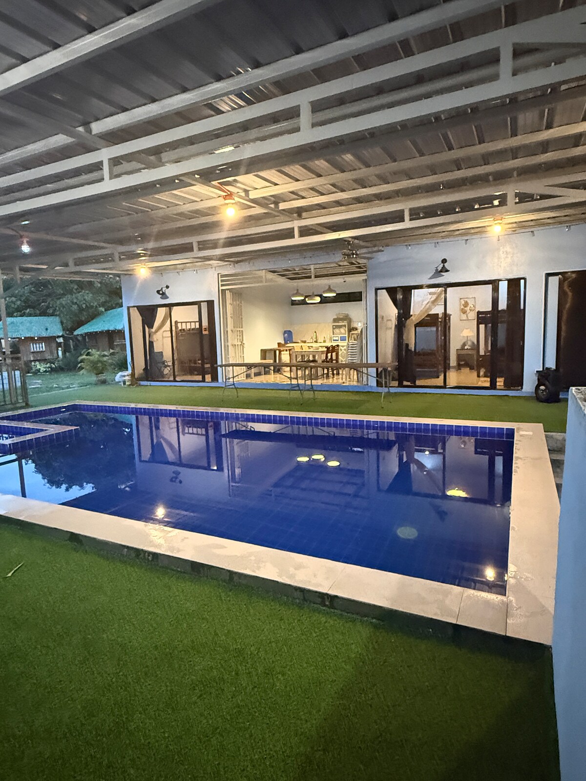 Welcome to The Penthouse Nuvali your ultimate staycation haven! This cozy loft-type retreat features everything you need for relaxation and entertainment: • Private jacuzzi for unwinding under the stars • Outdoor cinema setup with a projector for epic movie nights • Fully equipped kitchen for home-cooked meals • Bar counter • High-speed WiFi, TV, and spacious modern design with lush artificial grass accents • Games: Dart, Poker & Chess • 30mins Tagaytay • 20mins Enchanted Kingdom