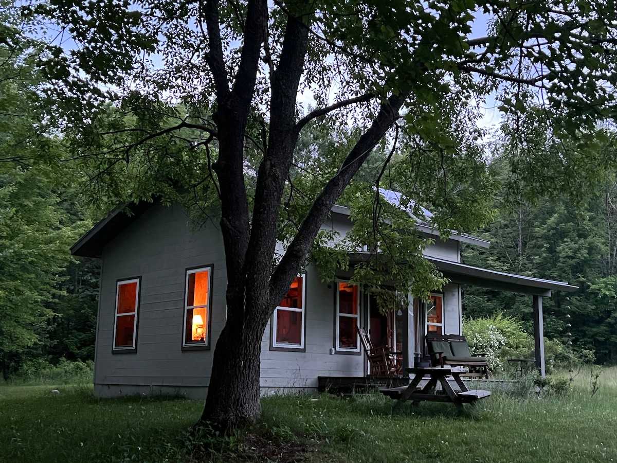 Unwind at this romantic getaway nestled in the beautiful Bristol Hills, just minutes away from Bristol Ski Resort, Canandaigua and Honeoye Lakes. This unique 1 bedroom 1 bathroom cottage is one of our two homes on the property along the peacefully flowing Mill Creek. Take in the natural beauty from the large patio and hot tub. Inside, enjoy the warmth of the gas fireplace, complimentary wifi and smartTV. The full kitchen and bathroom are well stocked with amenities to ensure a comfortable stay.