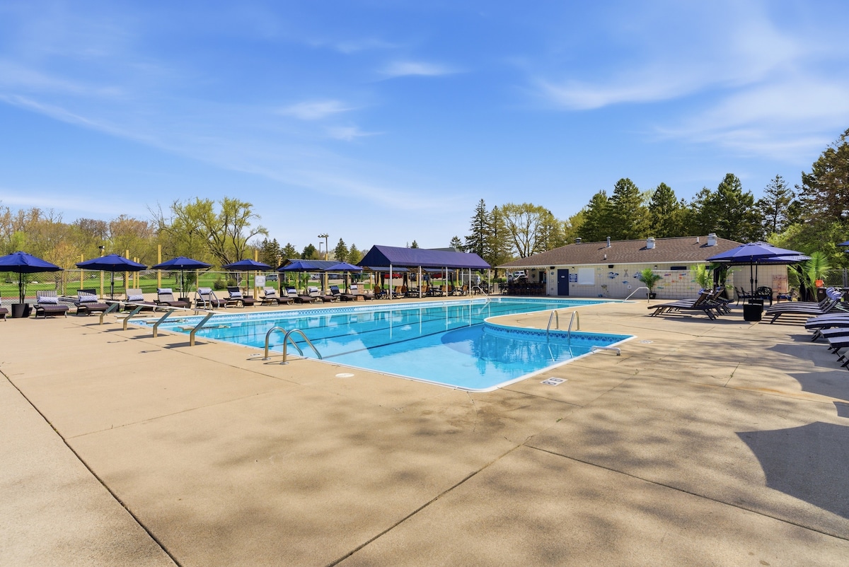 Freshly renovated duplex with a private 1 bedroom studio w/King bed & a pullout queen sofa sleeper. A fully stocked kitchen, fire lit living room and a washer & dryer for your convenience. Relax on the spacious deck next to the pool then enjoy the sunset in a brand new hot tub(2023). The overhead lighting creates a fun atmosphere! Enjoy a bonfire *wood is provided and your own Weber gas grill and patio furniture. Fully fenced yard for your furry friends *mini Doodle at the home *NO PARTIES*