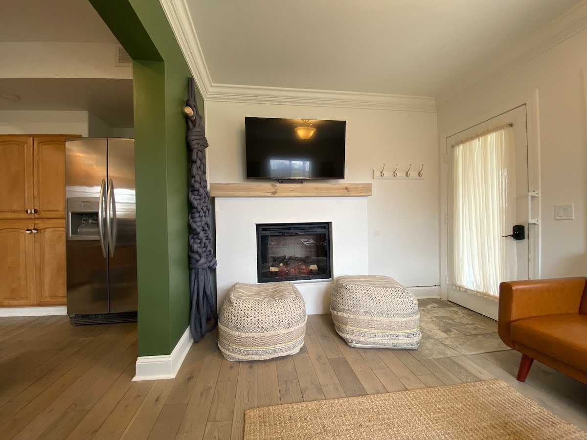Freshly renovated duplex with a private 1 bedroom studio w/King bed & a pullout queen sofa sleeper. A fully stocked kitchen, fire lit living room and a washer & dryer for your convenience. Relax on the spacious deck next to the pool then enjoy the sunset in a brand new hot tub(2023). The overhead lighting creates a fun atmosphere! Enjoy a bonfire *wood is provided and your own Weber gas grill and patio furniture. Fully fenced yard for your furry friends *mini Doodle at the home *NO PARTIES*