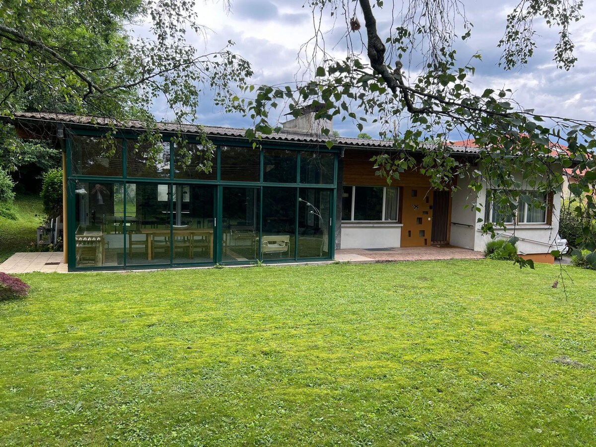 Superbe maison d’architecte de 200m², rénovée il y a un an, sur un terrain de 6000m² entouré de forêt et prairie. Idéale pour un couple avec ou sans enfant ou des fonctionnaires internationaux. À 10 min de l’aéroport, 15 min de la Place des Nations Unies et 20 min du centre de Genève, avec transports en commun à proximité. Tout confort : suite parentale, chambre enfant, cuisine équipée, internet, beamer, buanderie, parking. Cadre calme et verdoyant à deux pas du Lac.