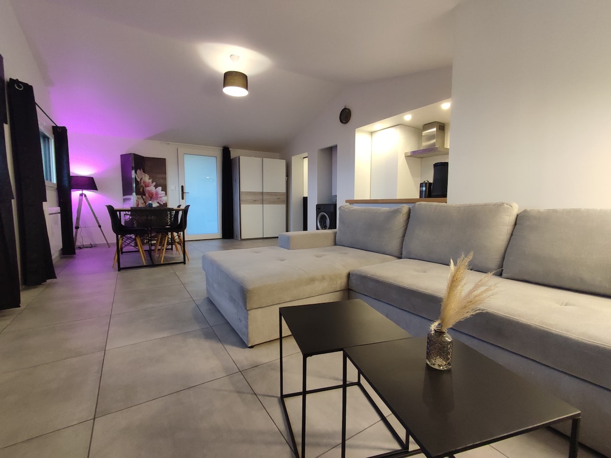 Maison avec jardin, terrasse, proche d'un parc, ski et Genève, très calme dans résidence fermée. 1 chambre lit double sdb douche italienne, 2 chambres lit simple, 1 clic clac (draps, couettes, serviettes fournies), 2 WCs, 1 sdb baignoire, cuisine équipée, lave vaisselle, penderie entrée et chambres, lave linge, TV, wifi, baby-foot, double parking privé, BBQ charbon, tables, chaises et canapé d'extérieur, table ping-pong, trampoline, papier de basket, banc muscu, piscine de la copropriété.