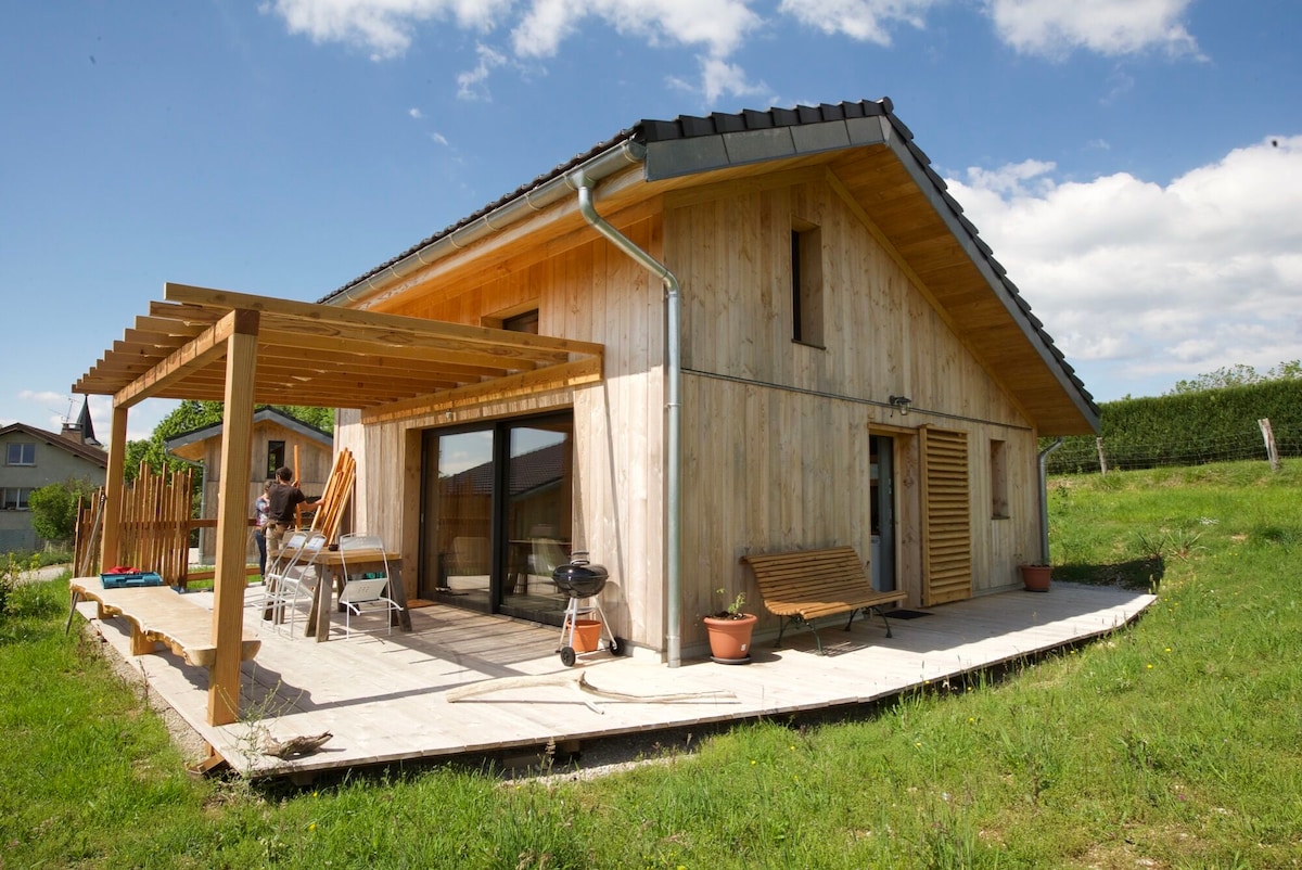 Maison en bois, en toute simplicité et délicatesse, au sein de la nature, face à un panorama magique. Cette maison unique de par sa conception écologique est située près du lac de Vouglans, dans le parc naturel du Haut-Jura. Entièrement construite de façon autonome par les propriétaires, elle bénéficie d'une ambiance chaleureuse, d'une décoration soignée et originale, d'équipements de qualité et d'une vue incroyable sur la vallée.