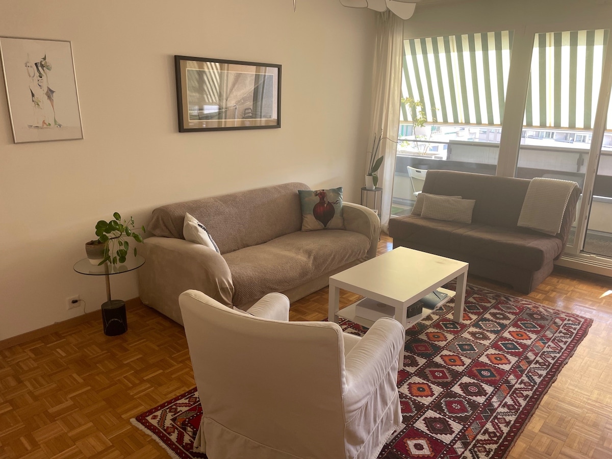 Flat 50m with a terrace & garden, located in the upscale Chample. The apartment enjoys an ideal location near Geneva's Old Town, a supermarket, Bertrand Park, the Cantonal Hospital, numerous restaurants. The area is quiet, green, sunny. The apartment features spacious rooms with a double bed or two single beds, a living room and dining table, a crib, a fully equipped kitchen, a large bathroom with a washing machine. Public transport free is just a few meters from the building . entrance. parking