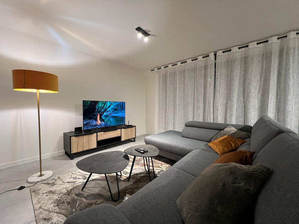This stunning highrise design apartment with an amazing view is only a short walk from Hasselt city center. The 2 bedrooms offer high quality, beds for a restful sleep. Fresh towels, shampoo, Nespresso, tea, Netflix are all provided for you. The interior has been beautifully designed to suit all needs. During the day and evening, you will greatly enjoy the large terrasse offering an amazing view of Hasselt. You will love watching the sunset behind the Quartier Bleu. FREE GARAGE PARKING SPOT