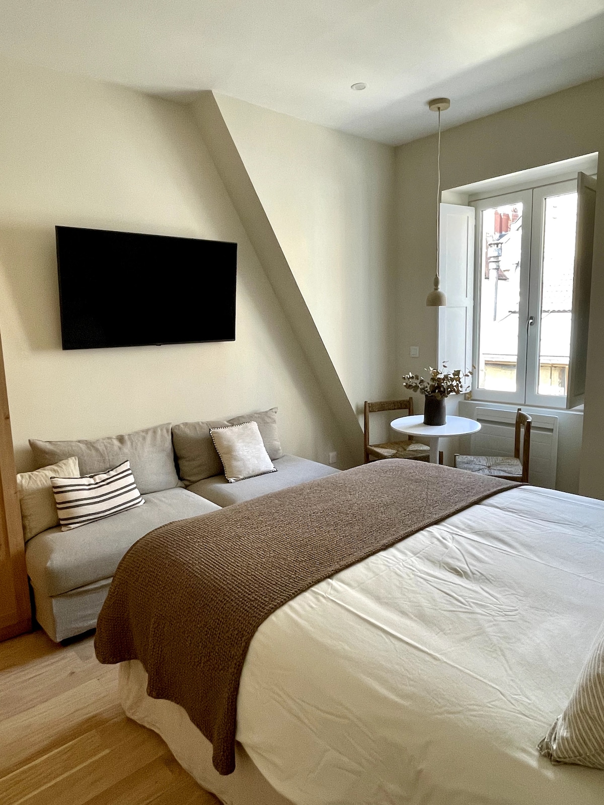 One room furnished accomodation with 32M² for 2 travelers, 15 km from Dijon, 7km from the ring road and major motorways (A39, A31). This renovated lodgement on the ground floor has a kitchenette, sleeping area, private bathroom, secure wifi, TV, washing machine, private outdoor courtyard. We welcome you personnaly with carefulness. The advantages of our village: very pleasant river in summer, lakes within walking distance, calm. Shops a few minutes by car.