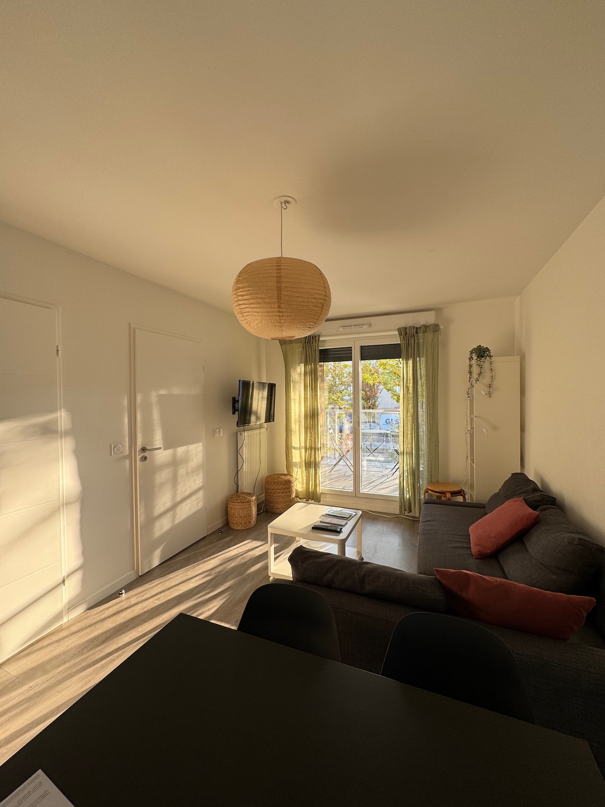Studio de standing, 27 m2, 3ème étage avec ascenseur. Très fonctionnel & très lumineux. Quartier calme, à 5 minutes à pieds, commerce et centre ville. Desservi par nombreux transports en commun (bus, Tram, train). Idéal pour 3 adultes ou famille 2 adultes & 1 enfant. Entrée placards et penderie, SDB avec machine à laver, séjour avec canapé lit très confortable pour 2 personnes et fauteuil convertible (1 couchage 107 x 193). Cuisine moderne entièrement équipée. Smart TV Ultra HD, wifi, Netflix.