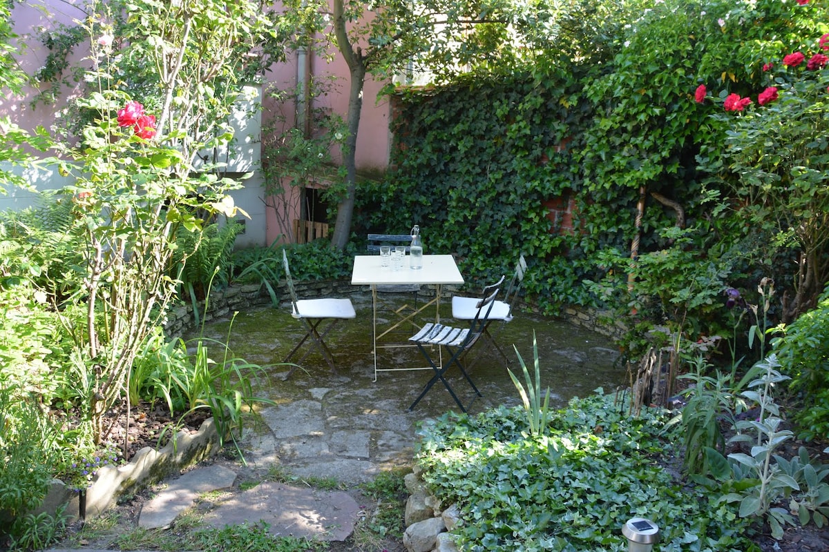 Charmante maison de ville, collée à Paris, dans une allée piétonne, au calme absolu, à 500 mètres du métro et à proximité de tous les commerces. Très lumineuse, et dotée d’une belle terrasse pour profiter du soleil ☀️ Parking couvert disponible 🚘 La maison se compose d’un salon et cuisine ouvrant sur l’extérieur, d’une chambre double au 1er, avec salle d’eau - WC, d’une chambre double au rdc, avec salle d’eau - WC, et son dressing doté d’un couchage simple. Le canapé est convertible.