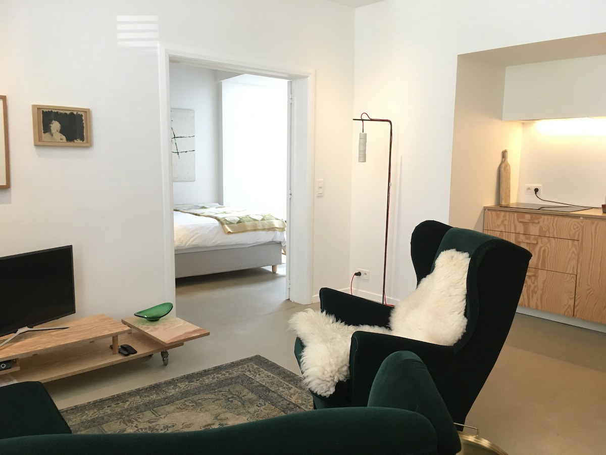 A beautiful apartment in the middle of the centre of Ghent. The studio has luxurious and stylish furniture, and a big outdoor terrace with a table and seats. This terrace is right next to the river De Leie which crosses the city. We’ll supply you with fresh bed linens, towels, kitchen towels, a few rolls of toilet paper, soaps and shampoo. We also provide some Dash washing machine pods, some teabags and Nespresso cups for a small price to make your stay even more relaxing.