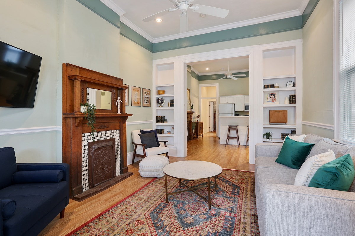 A unique studio that is part of a historic double shotgun-style home just across from the New Orleans Fair Grounds Race Course, home of Jazz Fest! Enter the completely private suite through your own private side door to the one bedroom studio, complete with galley kitchen and bathroom. Built early 1900s, our home has been completely renovated. Period touches including heart of pine floors, marble, and coal-burning fireplace are complemented by the modern kitchen and bath. LICENSE #22-RSTR-15093