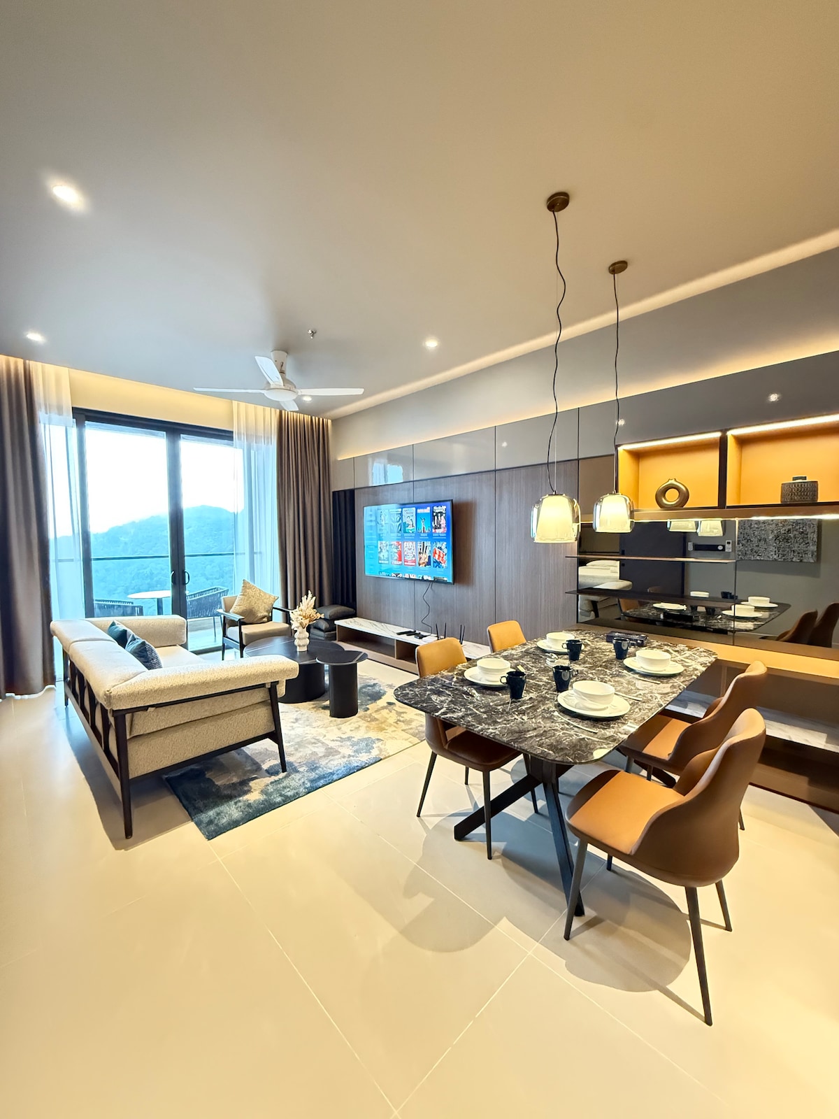 For 8-Pax 3 Rooms please kindly book at http://www.airbnb.com/h/8pax-antara-genting Modern Antara Fenting Suites in Genting Highlands apartment with bright living room, Smart TV, Netflix, high-speed WiFi. Open dining, cozy bedrooms with TVs, and stylish décor. Walking to Genting Casino, SkyWorlds Theme Park, Arena of Stars, SkyAvenue Mall, and Genting Cable Car within 15 minutes by the Link Bridge. —perfect for family or group getaways.