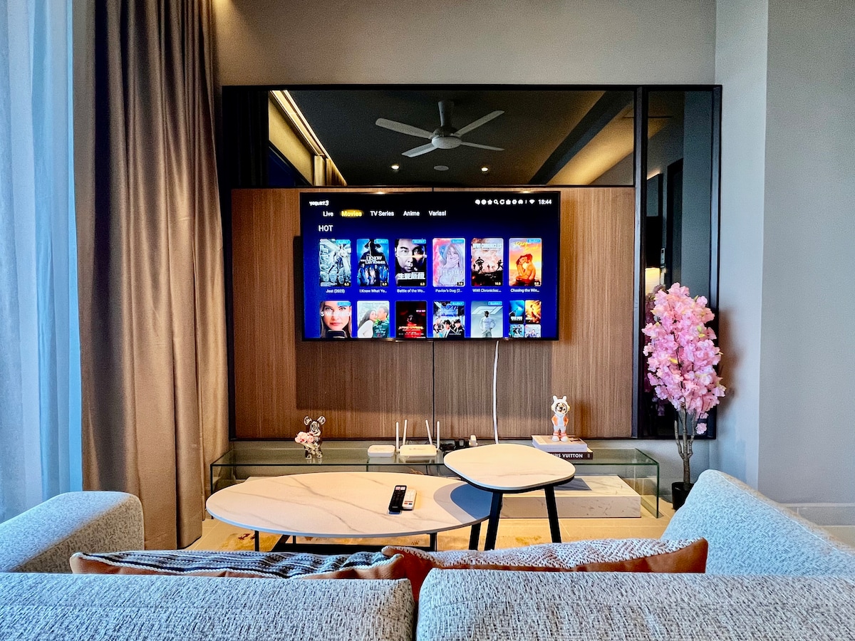 🏡 Spacious 3R2B Family Suite • 🛁 Jacuzzi • 🎲 Rummy/Mahjong • 🍲Steamboat Enjoy a modern 3-bedroom family suite with Netflix, mahjong/rummy table, steamboat set, and a private balcony jacuzzi. Wake up to stunning mountain views with a direct link-bridge to SkyAvenue. This brand-new unit fits 6–8 guests with 2 extra mattresses. Over 50 family-friendly facilities onsite. Just 15 minutes via escalators to SkyAvenue and First World Plaza. Parking: RM10 weekday / RM15 weekend. (Per Entry)