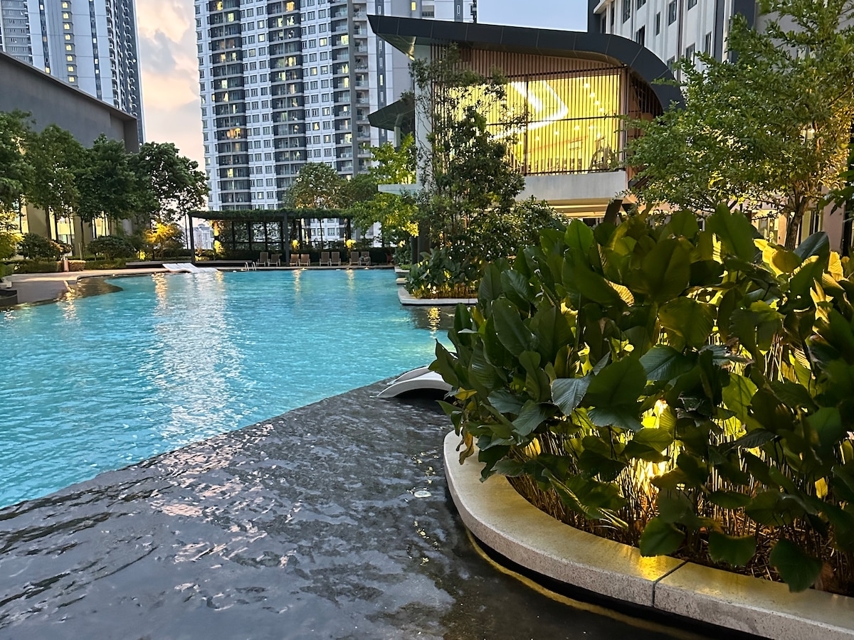 1. Netflix (app) 2. Disney (app) 3. 500 Mbps Internet 3. Karaoke Set (2 mics) 4. Projector with home theater (movie night) 5. 55’ TV 6. 2 adult & 1 kid swimming pool 7. Basketball court 8. Tennis court 9. Jogging route in the building 10. Yoga deck 11. 2 gym 12. Coffee Bean, Baskin Robin, Secret Recipe, Clinic, Restaurant, korean store, grocery store under the building 13. Romantic and tranquil ambiance in the house 14. equipped kitchen 15. Washing & Dryer Machine 16. Free GoKL Bus