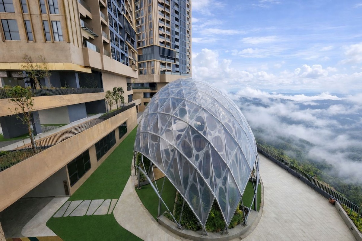 Luxurious Rustic Suite high up in the hills Genting Highlands walkable sheltered link bridge to Genting SkyWorlds Theme Park. Experience the cooling weather 17°C with your own personal Master Room balcony with mountainous view. Outdoor Metal Dome Botanical Garden with playground, indoor heated swimming pool, bowling alley, arcade room, sauna, gymnasium, trampoline room, playground and Foosball. Sit above the clouds enjoy coffee with Local cuisines cafés, convenient shops and shopping mall below.