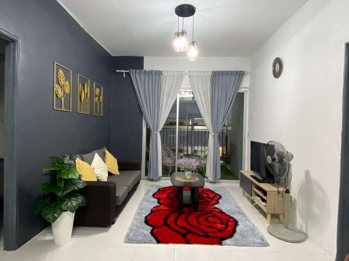 Have fun with the whole family in this stylish place. ✦The entire unit is a 3 Bedrooms & 3 Bathrooms, comfortably sleeps 11 guests. The bedrooms come with air conditioning and a ceiling fan, Living room with a ceiling fan only. Basic equipped with open concept kitchen for light cooking. • The balcony faces the direction of Gohtong Jaya and offers a partial view, with one side facing the road and the other side overlooking the mountains and Genting Highlands.