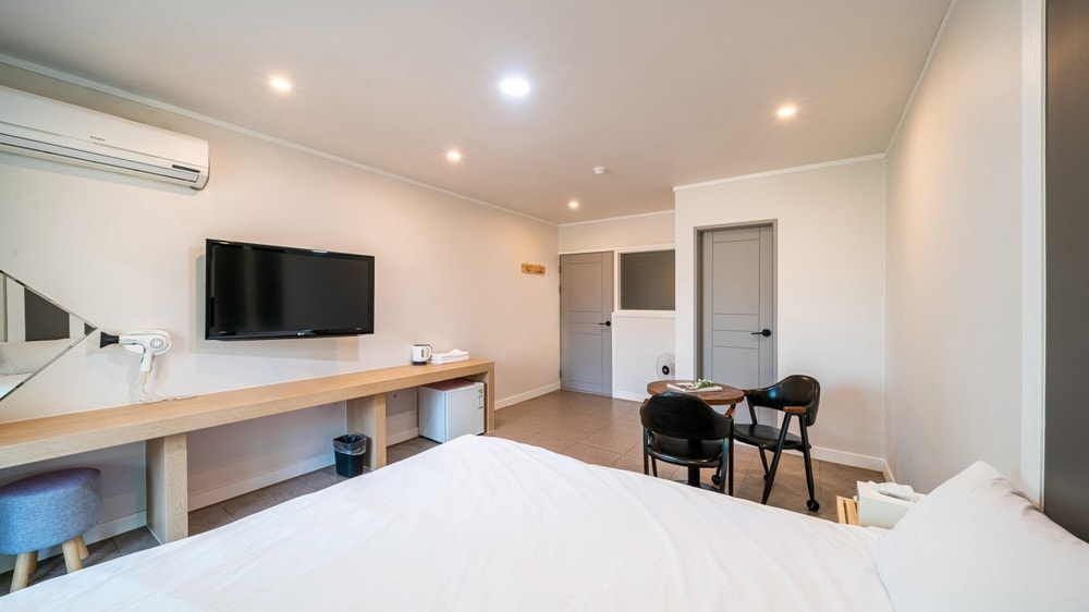 안녕하세요. 저희는 다양한 휴식 공간을 연구하고 제공하는 ONDA입니다. 이 곳에서 머무르실 모든 분들께서 편안하고 행복한 시간을 보내기를 바랍니다. [숙소 소개] 구조라 해수욕장 근처에 자리잡은 거제 웨이브호텔&펜션 입니다. 호텔형과 펜션형 객실이 다양하게 준비되어 있습니다. * 객실은 랜덤 배정입니다. 참고 부탁드립니다 * * 객실 내부의 벽지, 커텐등의 색은 객실 사진과 조금씩 다를 수 있습니다. 예약시 참고 부탁드립니다 * [객실 유형] 원룸형 (더블베드1+화장실1)