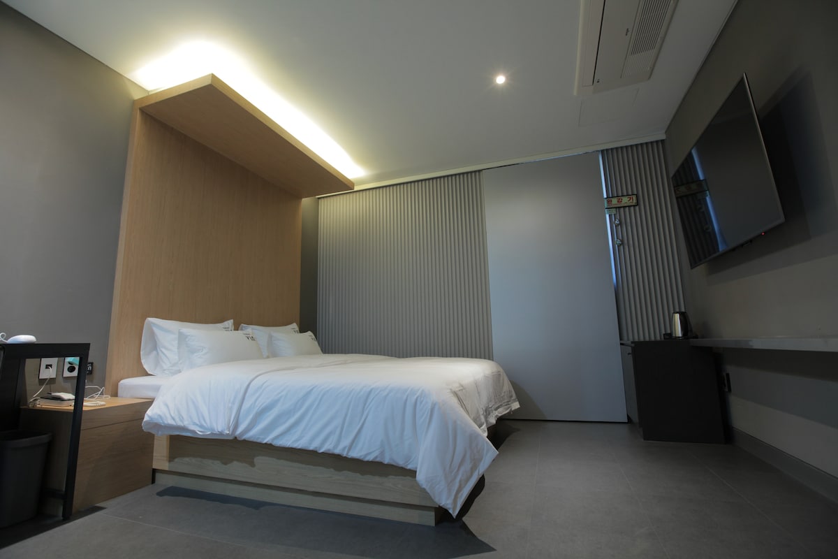 안녕하세요. 저희는 다양한 휴식 공간을 연구하고 제공하는 ONDA입니다. 이 곳에서 머무르실 모든 분들께서 편안하고 행복한 시간을 보내기를 바랍니다. [숙소 소개] 2023년 9월 GRAND OPEN!! 통영 TOP 숙소, 호텔 헤미쉬에서 편안한 하루를 맞이하세요. 무료 조식/ 구스 침구 / AI세탁(천연세제) /넷플릭스,유튜브/ 세스코 객실관리 / 간편조식 제공 / 세탁기 & 건조기 & 스타일러 이용 가능 / 어린이 놀이방 / 발렛파킹 [객실 유형] 원룸형 (퀸베드2+화장실1)