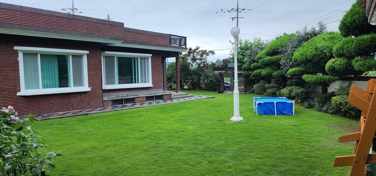 조용한 단독주택가에 위치한 단독주택 별채입니다. 넓은 잔디마당 견사에 2마리의 작은 강아지와 연못 잉어들이 살고있어요~! 잔디마당에서 바베큐하시고, 지하노래방에서 재밌게 놀수있어요.(냉난방기 갖추어져 있어요.) 아침풍경이 참 예뻐요. 조용하고 평화로운 마당 테이블에서 자연을 만끽하며 커피한잔. . . 여러가지 꽃들이 계속해서 피고지고 한답니다. 건물뒤편 넓은논에는 계절따라 초록에서 노랗게 바뀌는 벼이삭도 볼만한 풍경이랍니다^^ *체크인 - 오후4시 (짐 보관은 아침부터가능) *체크아웃 - 낮12시 *바베큐 숯불 - 2만원(비가와도 바람만 심하게불지않으면 가능하고,겨울에는 바람가림막과 난로 피워드립니다.) *지하노래방 -이용규칙 -요금 : 1만원 무제한 (매일 신곡업데이트)/금연구역/술,음료,음식물반입금지 입니다. *정수기,에어컨,티비,전기쿡탑,전기주전자,원두커피머신,다리미, 전자렌지,세탁기,토스트기, 냉장고,전기밥솥, 샴푸, 린스, 바디워시, 수건 제공해드립니다.