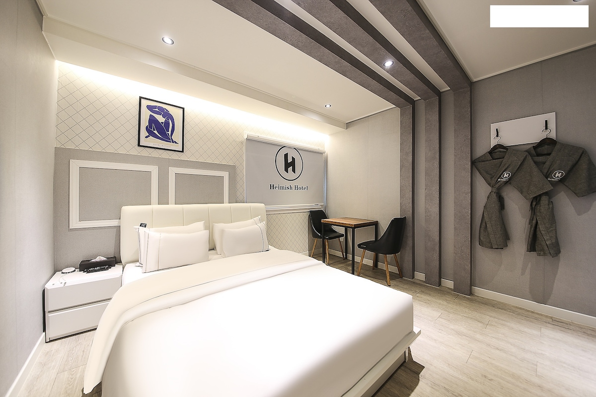 2023년 9월 GRAND OPEN!! 통영 TOP 숙소, 호텔 헤미쉬에서 편안한 하루를 맞이하세요. 무료 조식/ 구스 침구 / AI세탁(천연세제) /넷플릭스,유튜브/ 세스코 객실 관리 / 간편 무료 조식 제공 / 셀프 무료 세탁기 & 건조기 & 스타일러 이용 가능 / 무료 어린이 놀이방 / 발렛파킹 - 동피랑벽화마을까지 약 400m, 도보 3분 거리 - 통영시민문화회관까지 약 700m, 도보 6분 거리 - 이순신공원까지 약 800m, 도보 7분 거리 - 통영항까지 약 2km, 차량 4분 거리 - 통영케이블카까지 약 3.3km, 차량 9분 거리 - 통영루지체험장까지 약 3.1km, 차량 8분 거리
