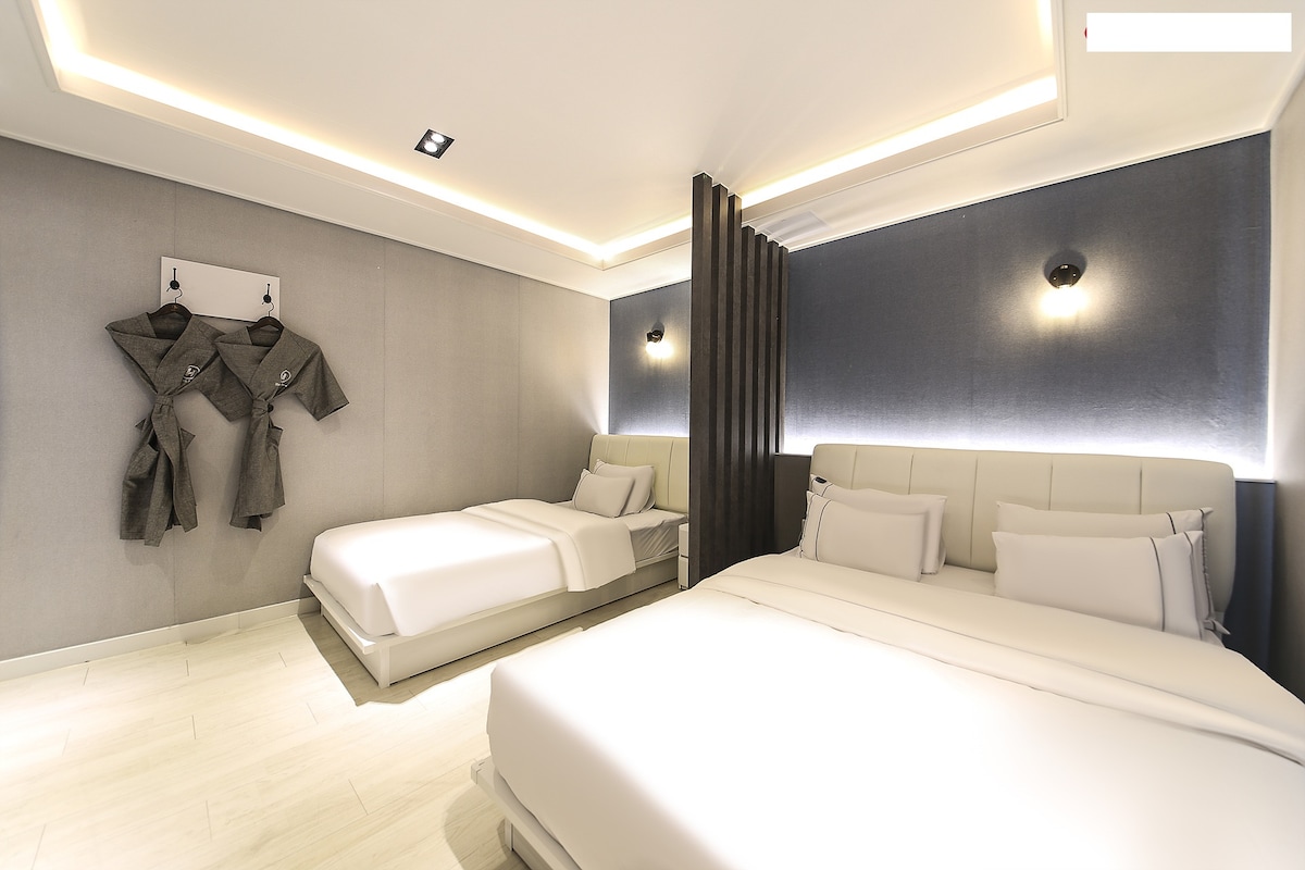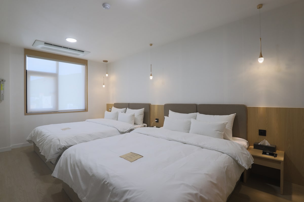 안녕하세요 저희는 거제 중심부에 위치한 숙소입니다. 방 1개, 화장실 1개, 공용 세탁실이 있습니다. 최대 4명까지 수용 가능합니다 낚시 및 레저 활동이나 조선소 장기 출장 시, 이용을 추천드립니다. *숙소가 3층에 위치하고 엘리베이터가 없습니다. 이점 참조하셔서 예약 부탁드립니다 [숙소 세부 사항] -요와 이불 제공 -무료 와이파이 -간단한 취사 가능 -샴푸, 린스, 바디워시 제공 -무료 주차 가능 내 집처럼 깨끗하게 관리하고 있습니다. 최소 인원 2명 초과 시, 인원 당 15,000원 추가 요금이 있습니다. 관광지, 거제 중심지와 인접해 있으며 가까운 거리에 사곡해수욕장이 있습니다. -시외버스터미널 8분 -사곡해수욕장 3분 -포로수용소 10분 -거제정글돔(식물원) 8분 - 삼성조선소 5분 - 한화오션 20분