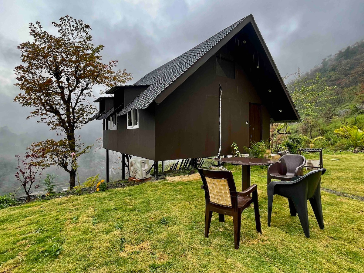 Nestled near Kempty Falls, this beautifully maintained premium cabin offers a true mountain escape. Surrounded by serene valleys and fresh mountain air, it’s perfect for couples or small groups seeking solitude and quality time away from city life. Located just 30 min. ahead of Mussoorie and ~300 km from Gurgaon, the private compound hosts only two cottages. Enjoy mesmerizing views, peaceful walks, hidden trails, and a glimpse of authentic Garhwal village life - all wrapped in nature’s calm.