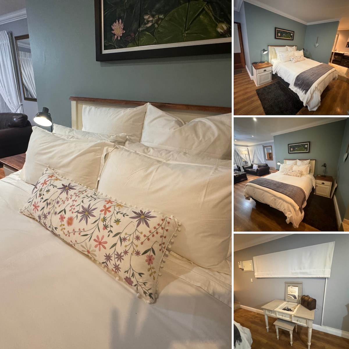 Tucked away in tranquil private garden, this charming hideaway invites you to slow down and unwind. Sink into a queen-size bed dressed in crisp white linen, enjoy the comfort of an en-suite shower, make yourself at home with a cozy kitchenette featuring a microwave, bar fridge, and Nespresso coffee machine. Fast Wi-Fi, peaceful surroundings, and a romantic atmosphere await. A hot tub is available on request at R500 per session, and the sauna at R150 per person — perfect for relaxing together.