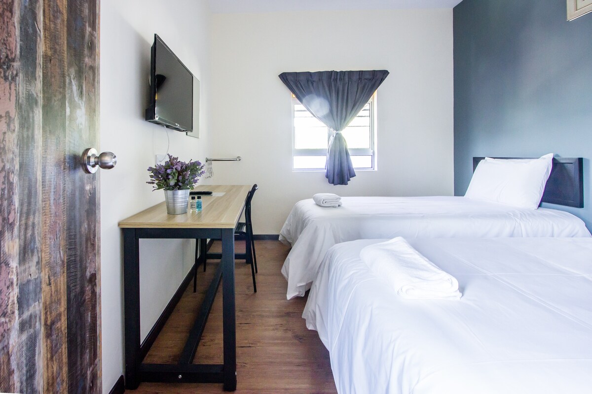 Beacon Executive Suites By XW Home Penang • 970 sqft, windy unit • Komtar & City View • Provide tvbox, suitable for family & friends • Newly renovated & furnished suitable for 6 pax • Fully air-conditioned, 3 Queen bed • 2 private car parks • Restaurants, cafes, pubs, Starbucks, Coffee Bean, Family Mart, 7-Eleven nearby • Strategic location, convenient transportation 5 min to Penang first bridge. • 5 to 10 minutes drive to Chew Jetty, Street art and UNESCO Heritage old town.